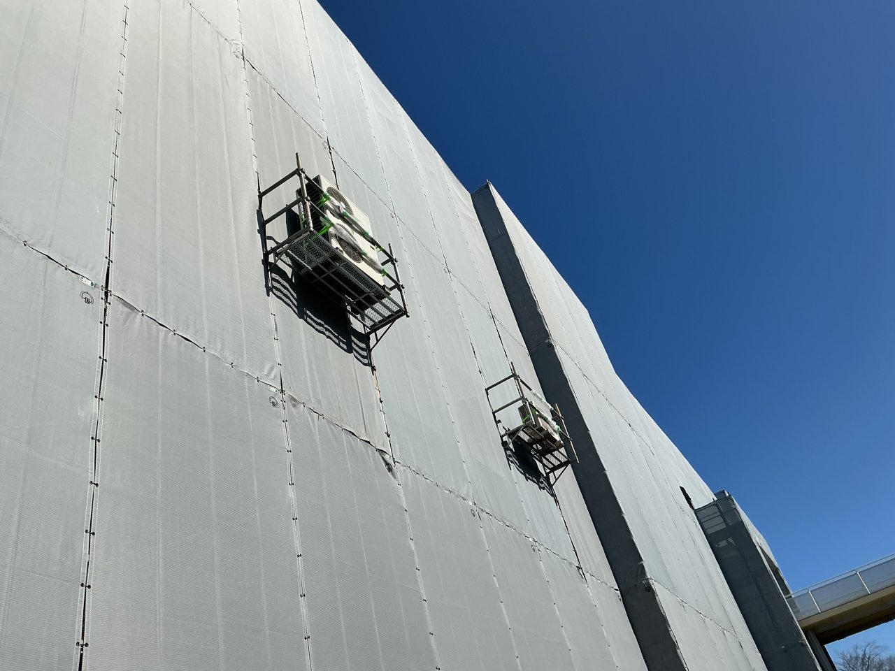 今回のパトロール時には、外部の足場が設置されており、外壁の補修作業等が進められていました。
